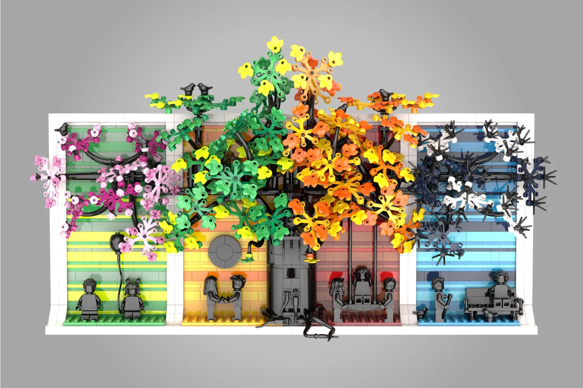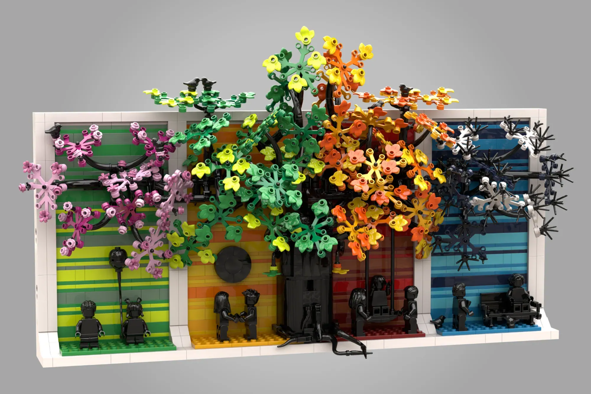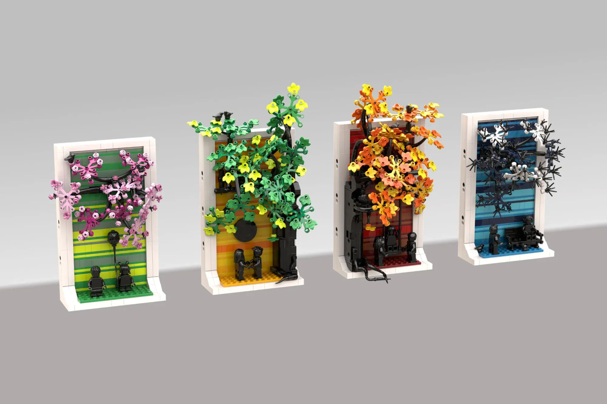 This versatile design works perfectly as wall-hanging art or shelf display. Even better, you can split the four seasons into separate builds or keep them united as one meaningful piece. The distinct color palette for each season creates visual harmony while celebrating life's natural progression.