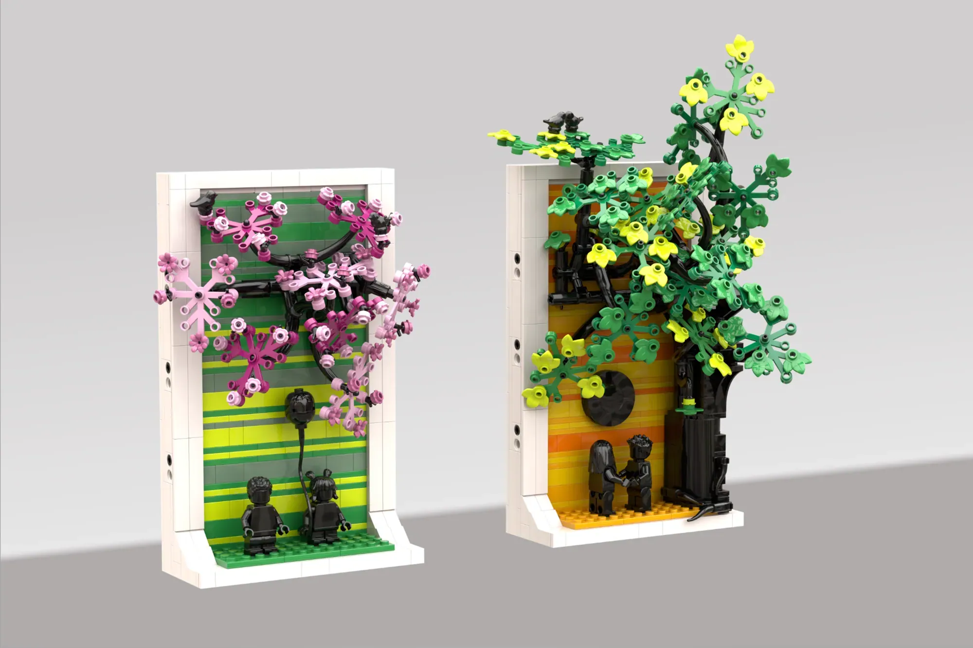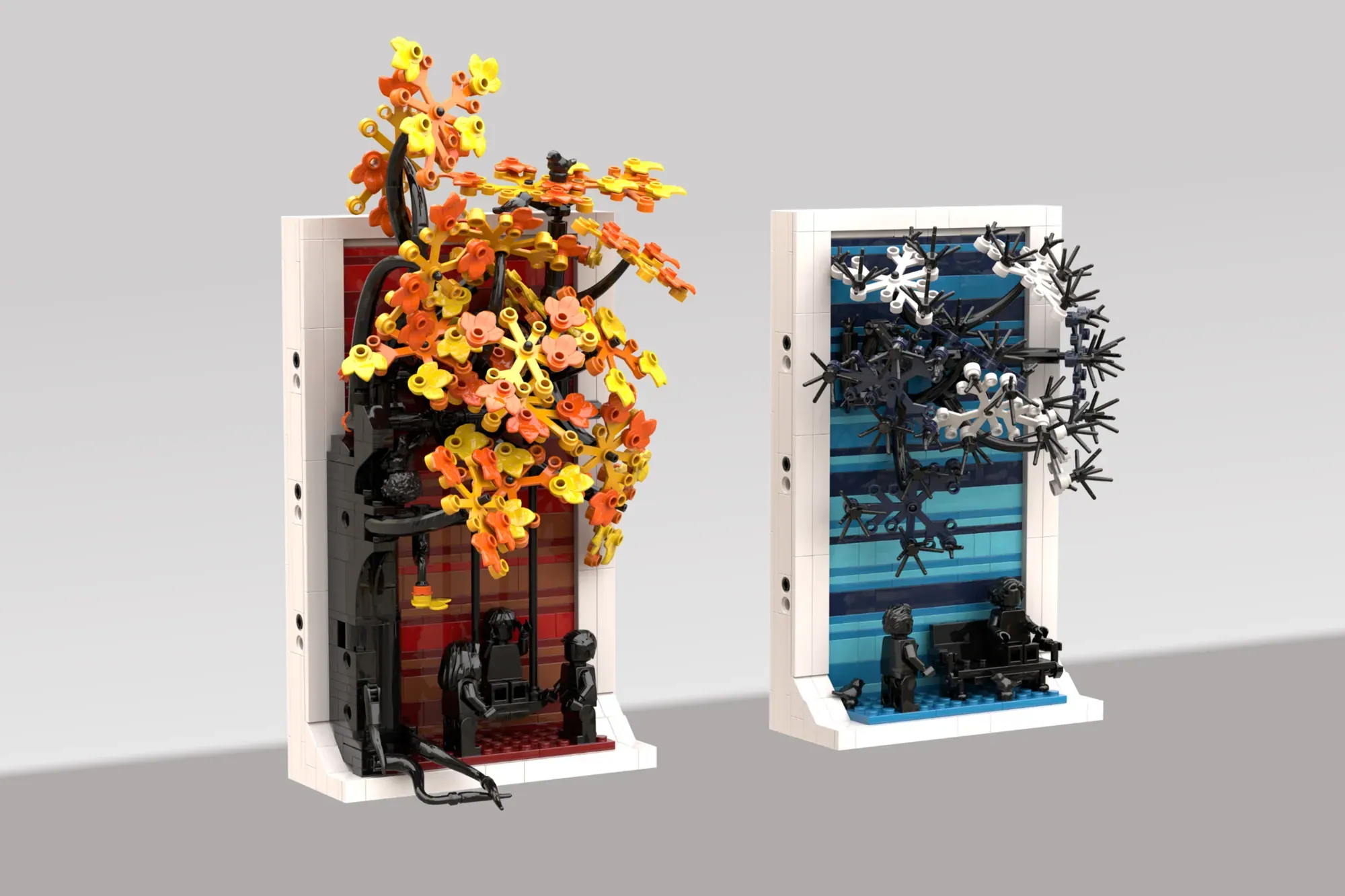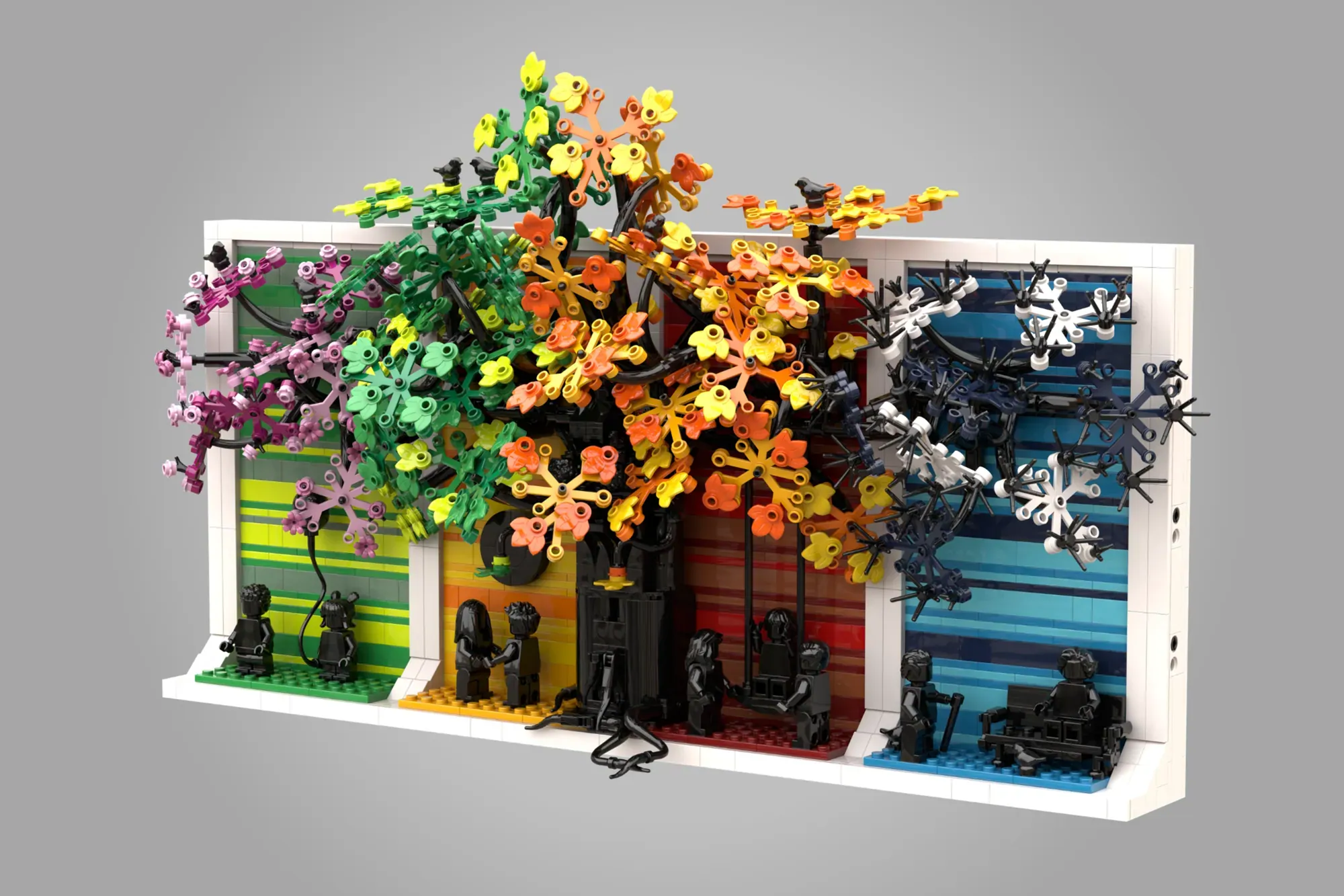 This versatile design works perfectly as wall-hanging art or shelf display. Even better, you can split the four seasons into separate builds or keep them united as one meaningful piece. The distinct color palette for each season creates visual harmony while celebrating life's natural progression.