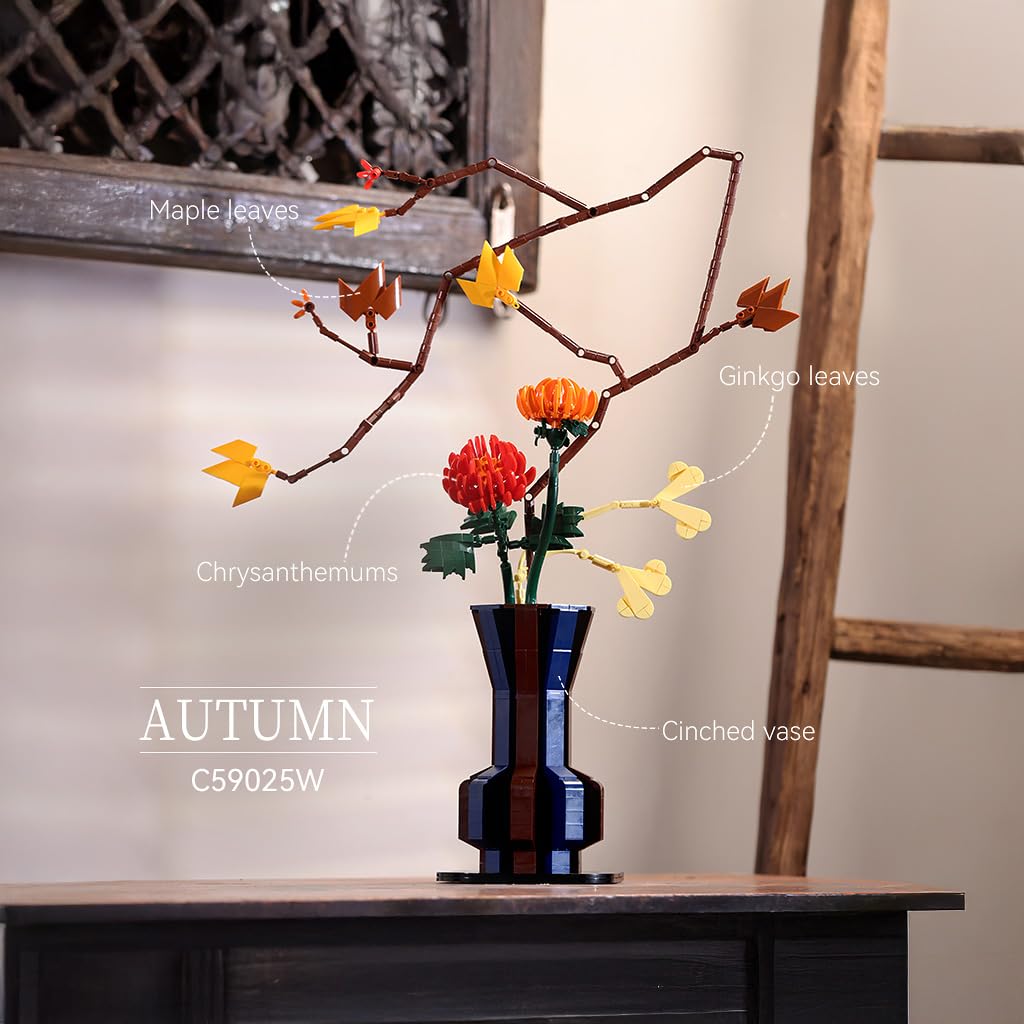 CaDA Oriental Autumn Floral Art - 795 Pieces - Self-Build Brick Building Block Model C59025W