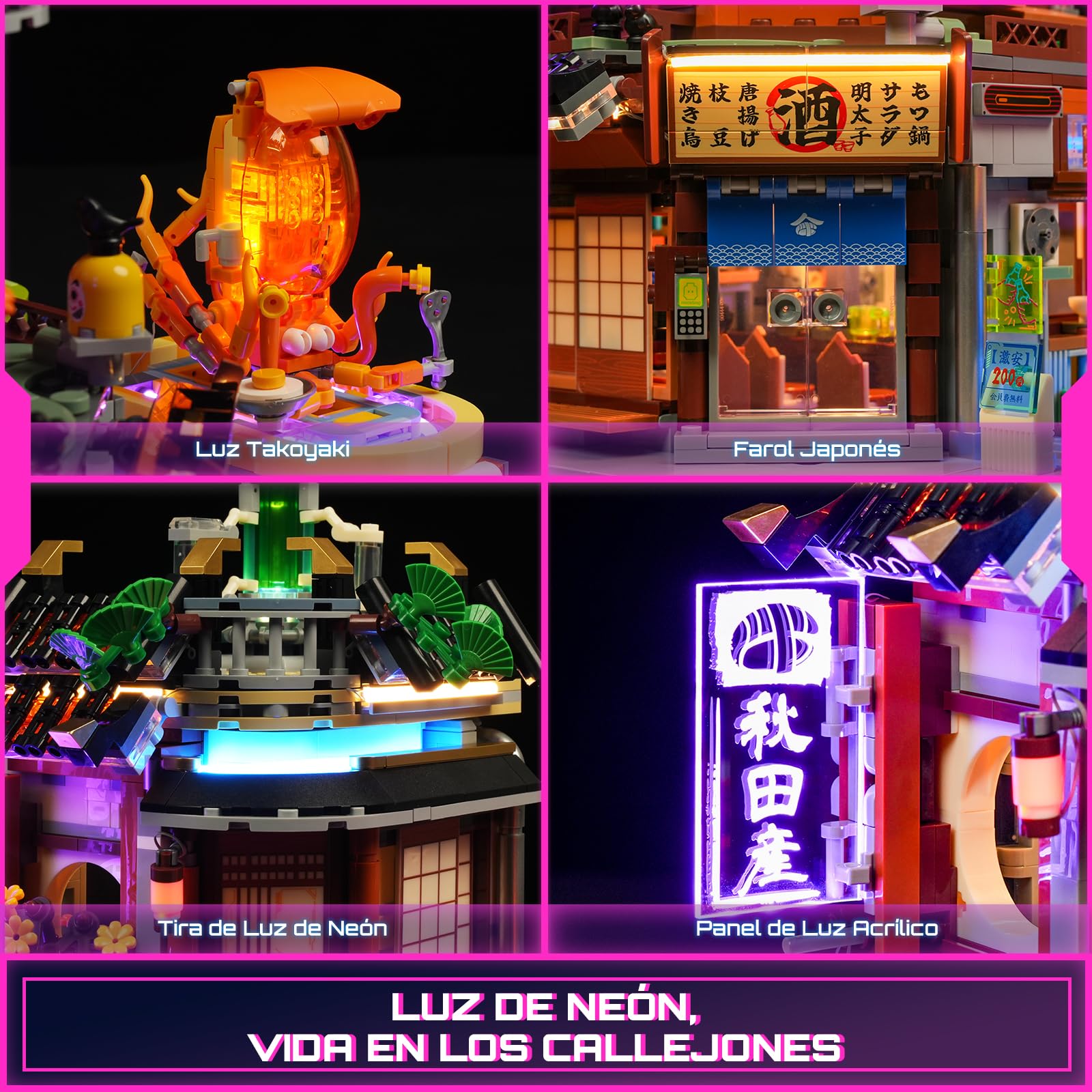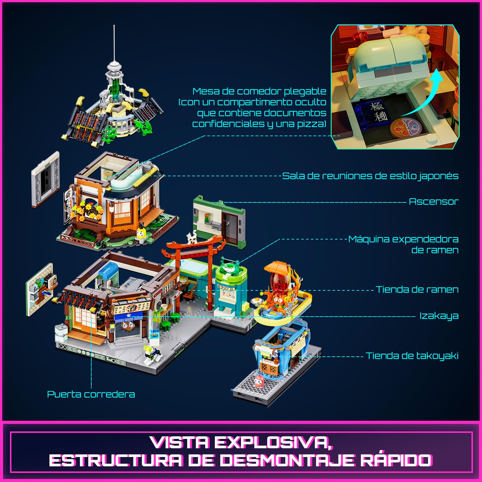 FUNWHOLE Cyberpunk Japanese Izakaya Light Building Block Set - 1987 Pieces Modular Cyberpunk Neon City Future Pub Japanese Street Scene LED Light Model Kit for Adults and Sci-Fi Fans