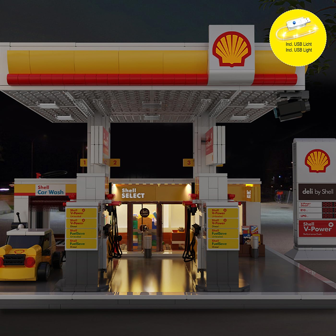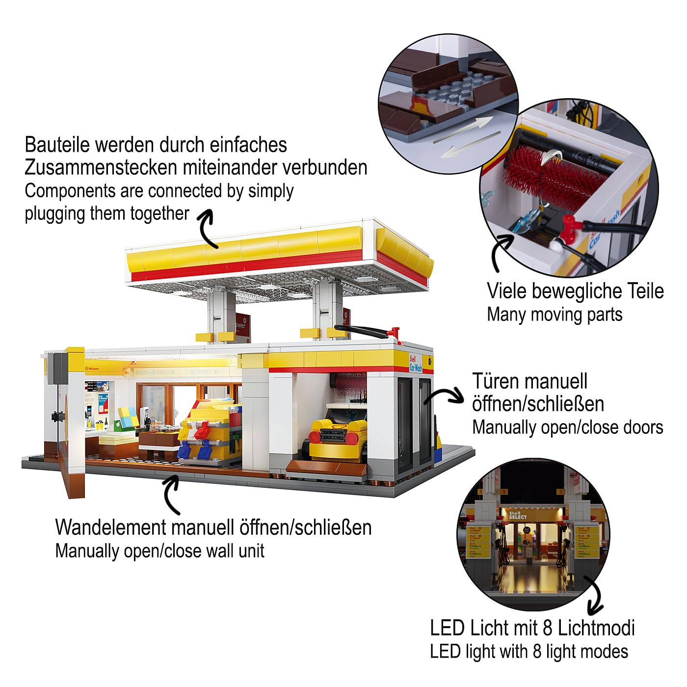 JAMARA CADA Shell 402857 Gas Station with Bricks for Children from 14 Years, Gift Idea for Children, Clamping Blocks, Promotes Fine Motor Skills, Manual Doors