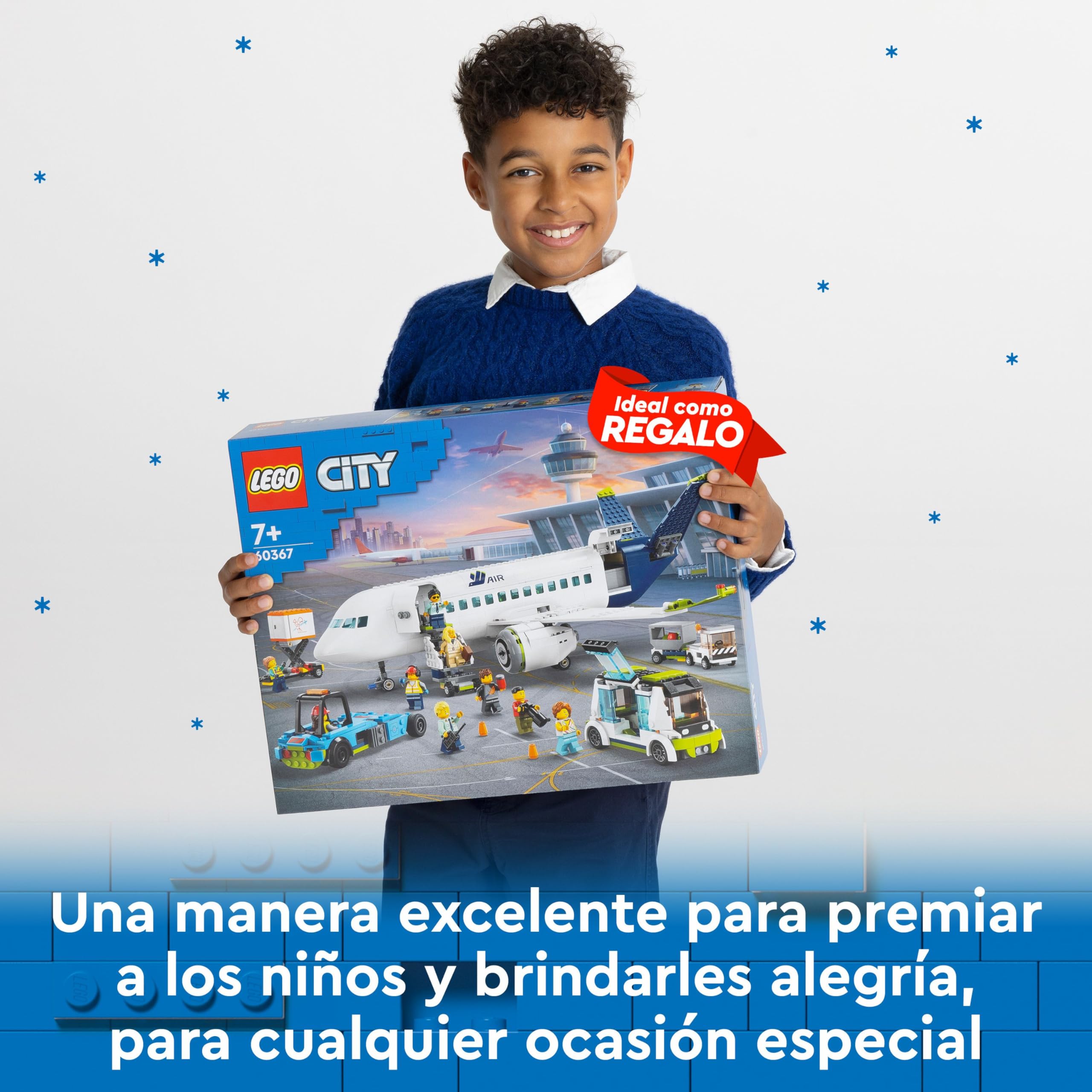 LEGO City Passenger Aeroplane Toy Building Set, Large Plane Model with Airport Ground Crew Vehicles: Apron Bus, Pushback Tug, Catering Loader, Baggage Truck plus 9 Minifigures 60367
