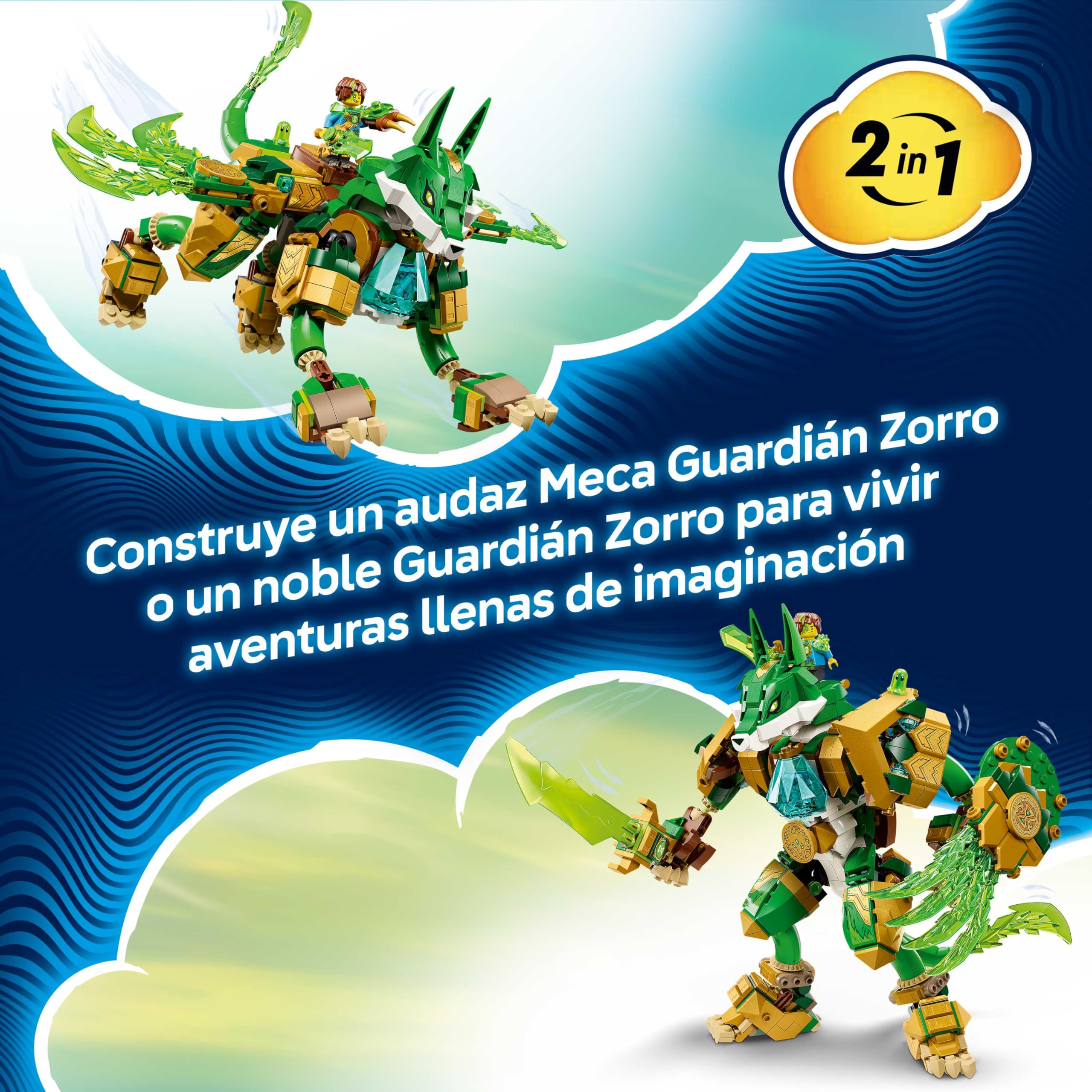 LEGO DREAMZzz 2in1 Fox Guardian Mech Toy - Action Figure Transforms into a Fox Warrior - incl. 3 Minifigures & a Collectible Green Treasure Creature - Gift for 9+ Year Old Boys - 71508