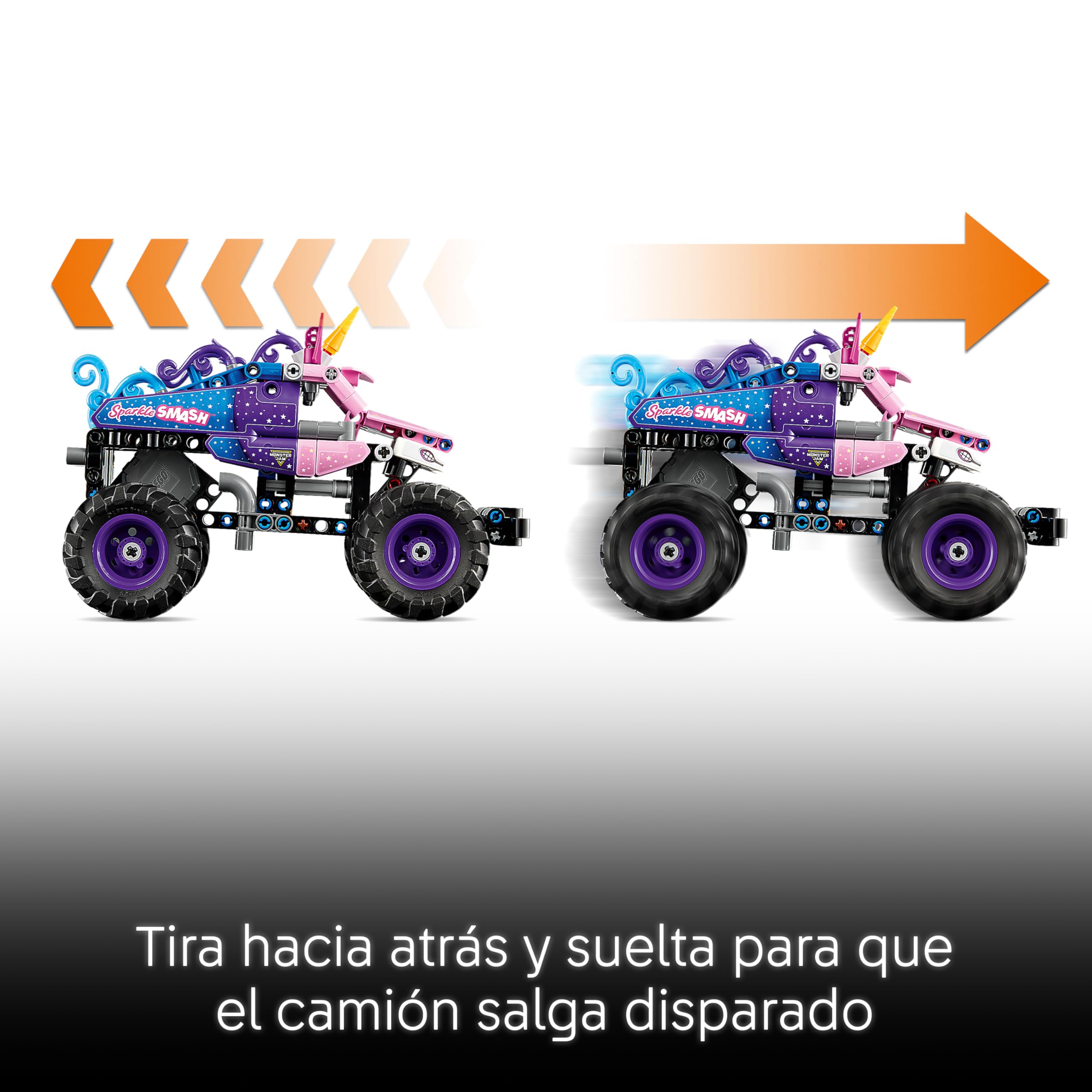 LEGO Technic Monster Jam Sparkle Smash Pull-Back Truck Toy - Pink Unicorn Themed Race Car Model Kit - Creative Birthday Gift for 7+ Year Old Boys, Girls & Fans - 42220