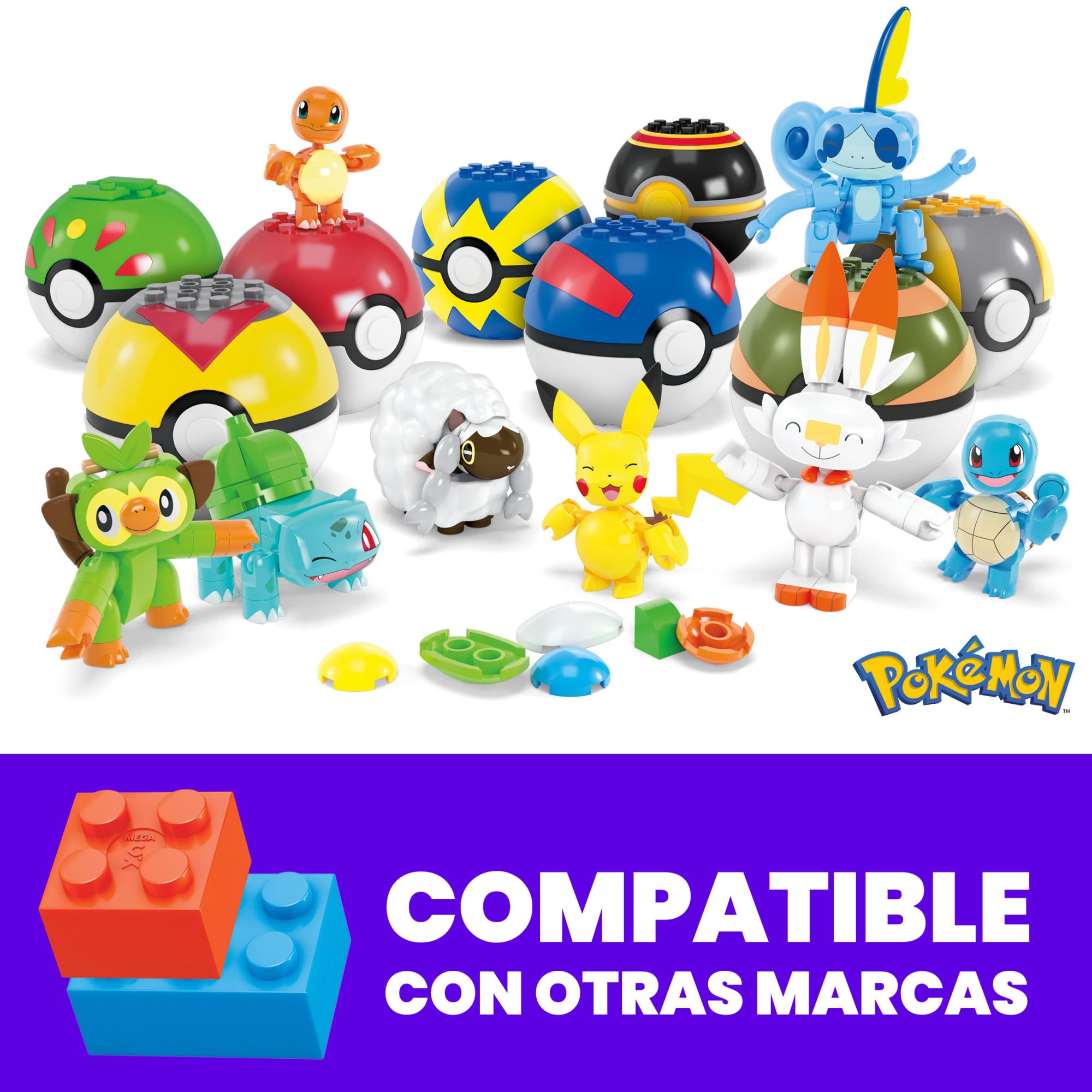 MEGA Pokémon Action Figure Building Toys, Beginner Trainer Team with 191 Pieces, 8 Characters Including Pikachu Charmander Squirtle, for Kids, HTJ75
