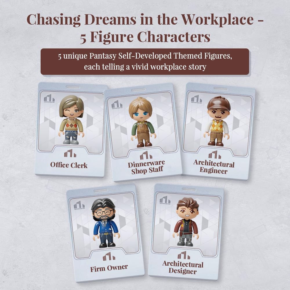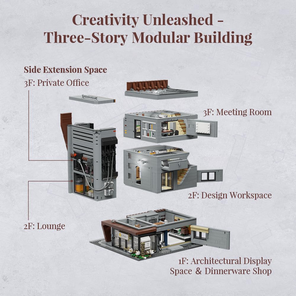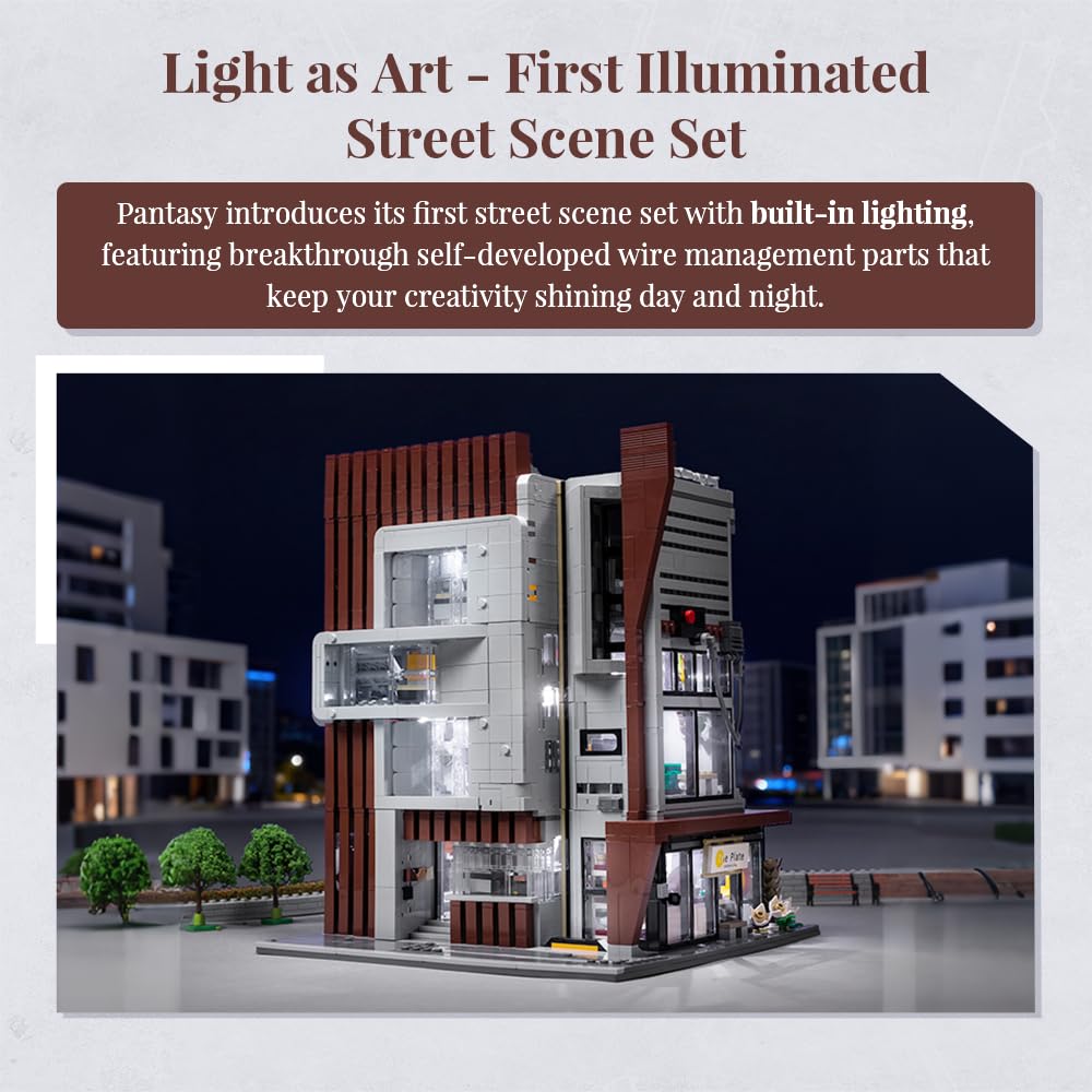 PANTASY Architecture Studio Building Set, Korean MOC Artist Ohsojang Collaboration, Modular 3-Story Modern Office with LED Lighting, Urban Street Scene Brick Model with 5 Minifigures