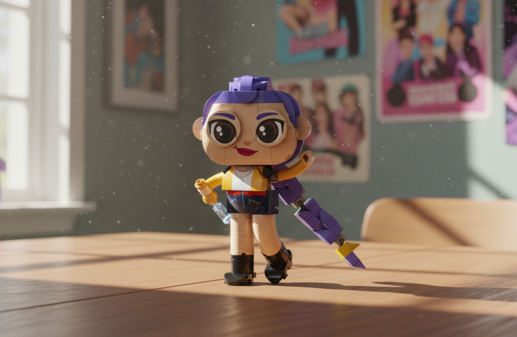 The project takes its inspiration from K-Pop Demon Hunters, a Netflix film where a group of K-pop idols secretly protect the world from demons. It’s equal parts music, friendship, and supernatural battles. The story follows the band as they perform on stage by day and transform into fearless demon hunters by night. The blend of glitter and danger makes for a perfect LEGO® Ideas concept.