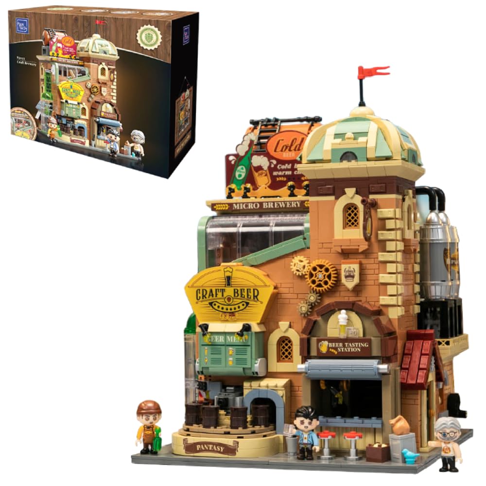 PANTASY Craft Beer Brewery Building Set for Adults - Vintage Microbrewery Factory Model with Modular Architecture, Dynamic Mechanisms, Self-Developed Minifigures & Display-Ready Design